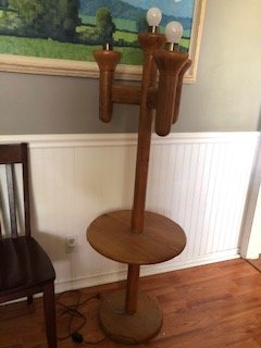 View it on ebay. Danish mid century modern modeline minimalist wood and aluminum 60 s table lamp. Missing one light cover. This item can be shipped to united states.