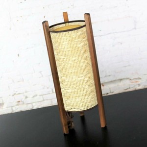 Mid century modern modeline deena caged wood table lamp w colored glass 3 heads 3 white shades 1960s elegantbuydesigns. Similar to modeline or pearsall design. 30 5 tall without shades from base to tip of finial 22 3 4 from base to top of socket and 38 1 2 from base to top of shade. Rare mid century modern teak lamp by the modeline lamp co.